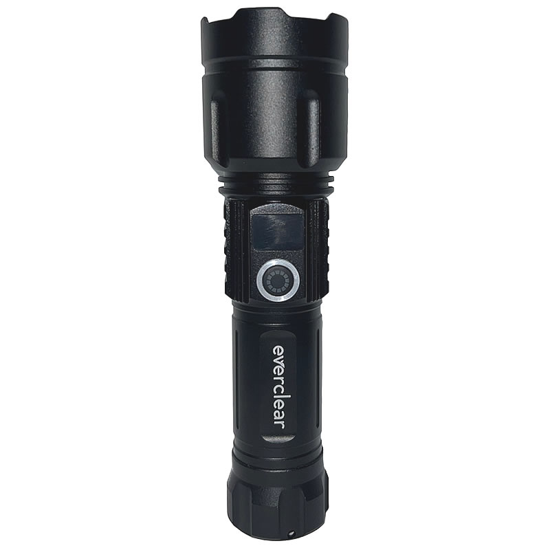 • Equipped with zoom lens and one Lithium Ion 26650 rechargeable battery • Max brightness : 600 lumens • Modes : High, Medium, Low, Flash and SOS • Digital display shows battery usage • Max usage time : 6-10 hours • Max charging time : 3-6 hours