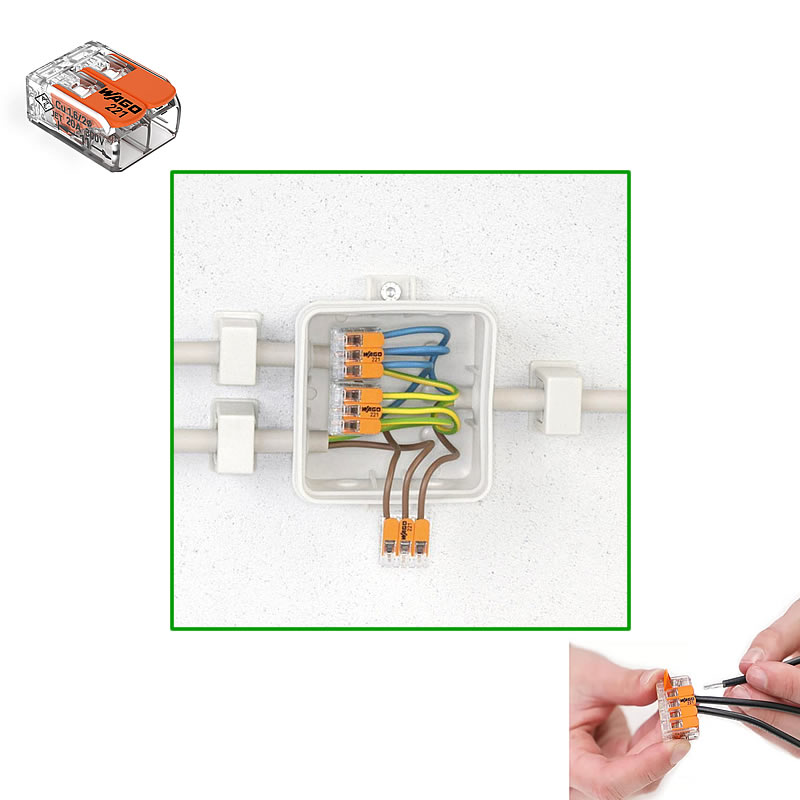 Connect 2, 3 or 5 stripped, stranded or solid conductors (12-24 AWG) with LEVER-LOCK WIRE CONNECTORS. With a tool-free, smart, compact, lever-operated splicing connector design for easy use, they make quick installation of high-power consuming devices.