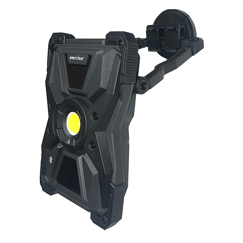 • Provides maximum bright, white light for those hard-to-reach projects where power is not easily accessible • Built-in Bluetooth speaker • 5 light modes • 180° swivel handle with base